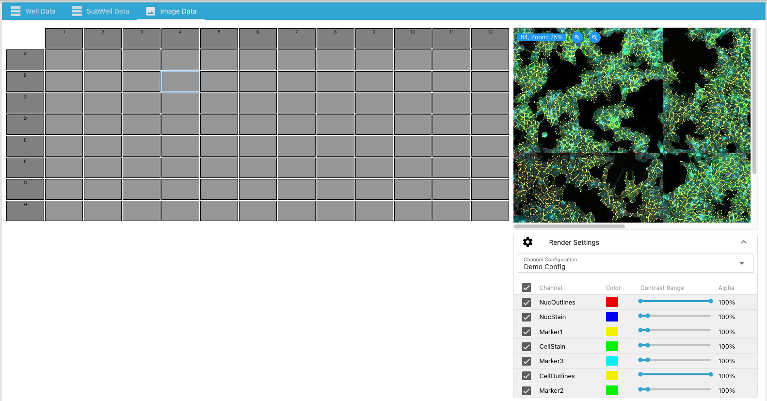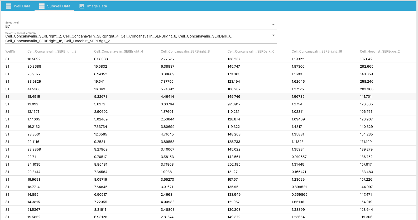 The third and last view allow the user to visualize the imported images by selecting a specific well