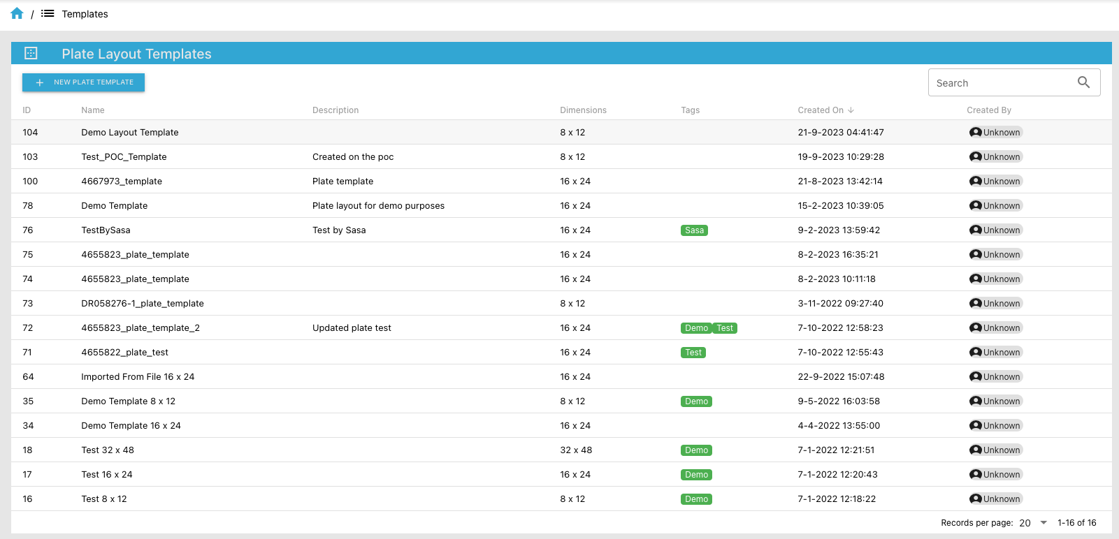 An overview table of all the plate layout templates will be displayed: