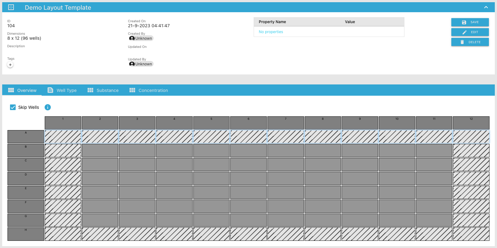 Initially you will see an empty plate template layout. To make it meaningful to use, you’ll need to update the plate layout template.