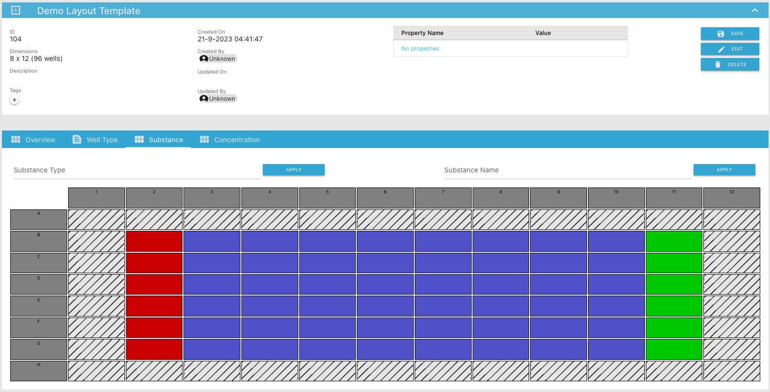 • Select the wells you want to add substance type and name to